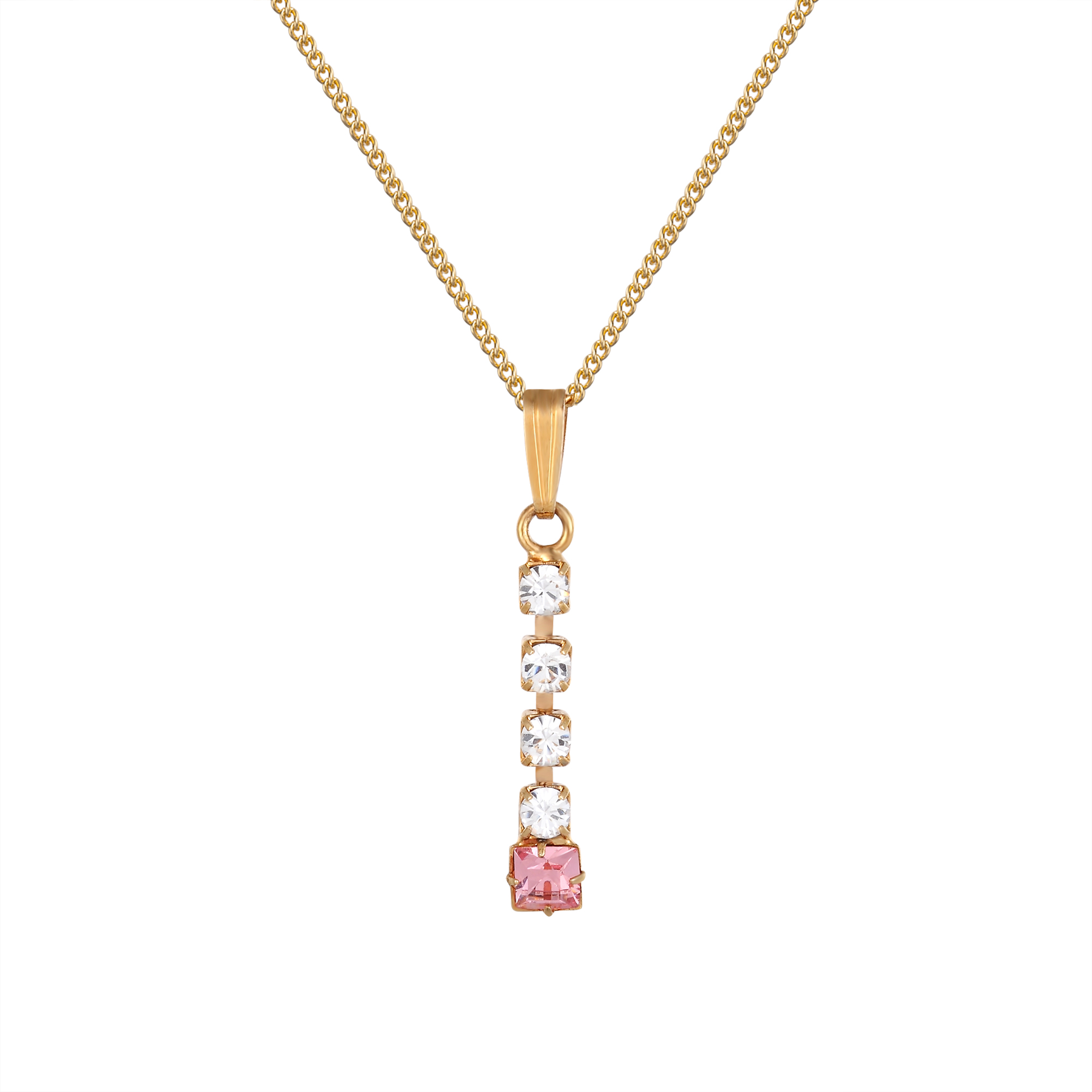 White and Pink crystal square drop pendant