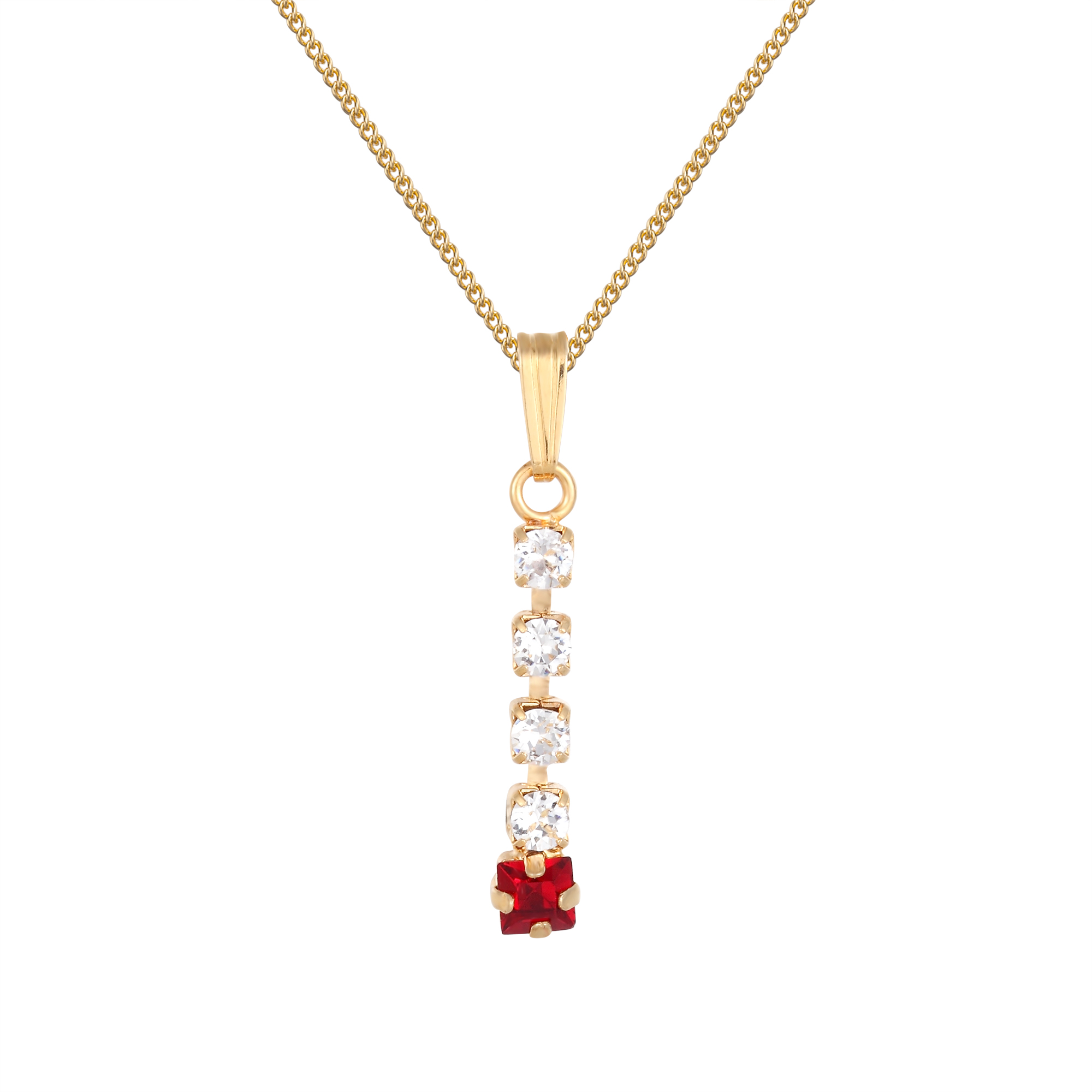 White and Siam crystal square drop pendant