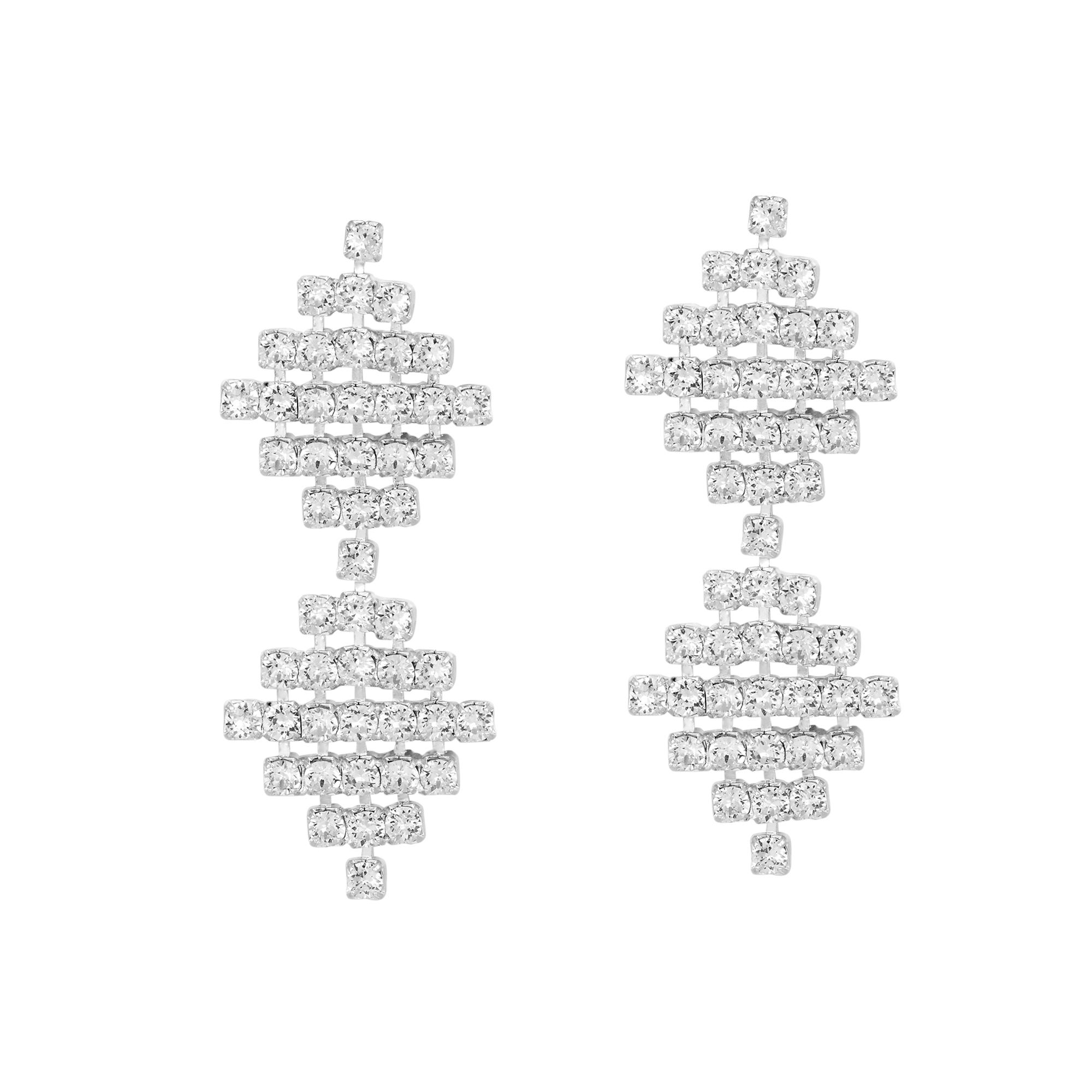 Two is better than one, so two double squared earrings must be even better, right? These stunning Swarovski crystal-studded earrings are made with sterling silver or 18ct gold plated over brass. Sold as a pair.