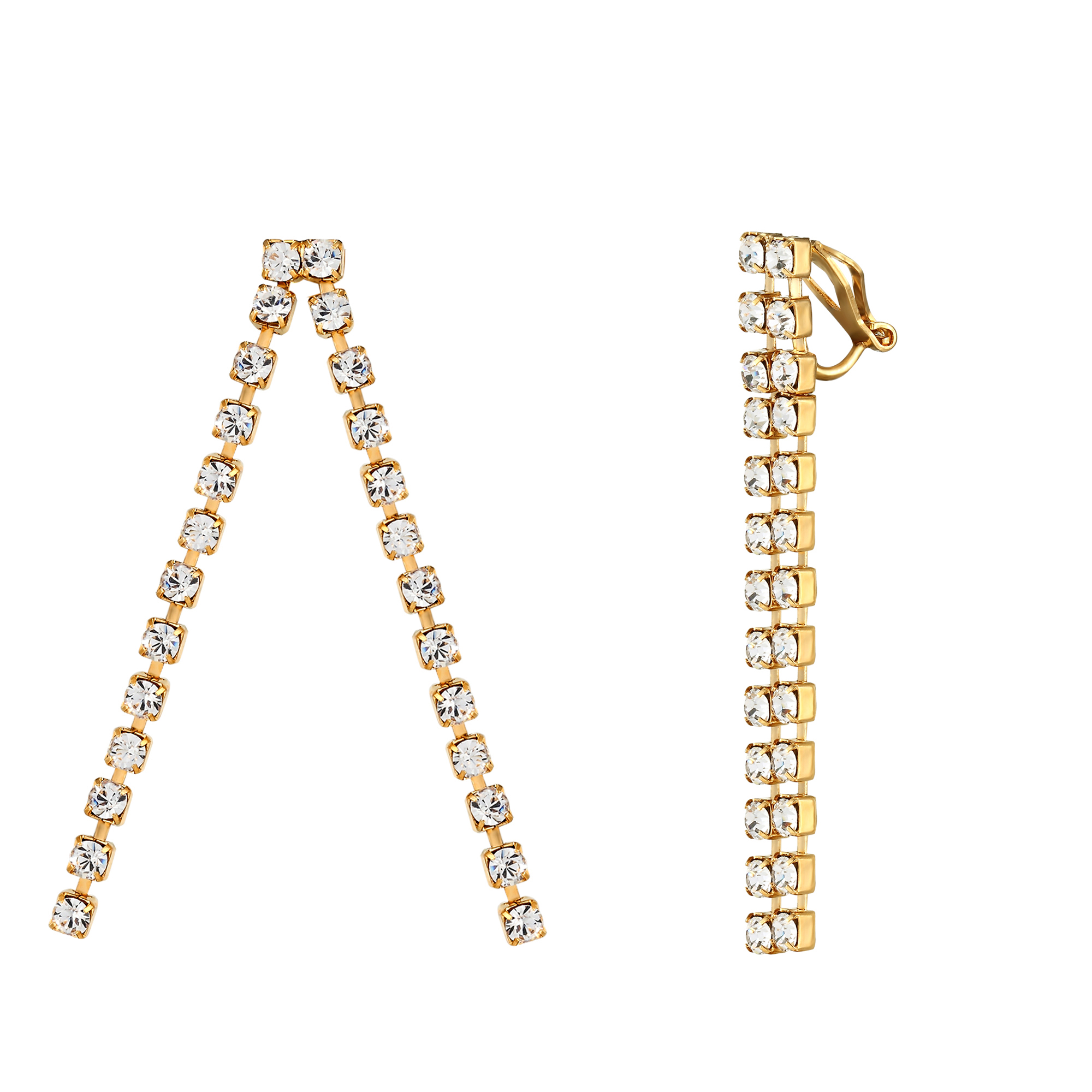 Stranded without perfect earrings for that special occasion? These elegant double strand Swarovski Crystal Earrings might just be the winner. Sold as a pair of studs available in Silver or 18ct Gold plate brass. A clip-on version is also available so everyone can enjoy these lovely earrings.