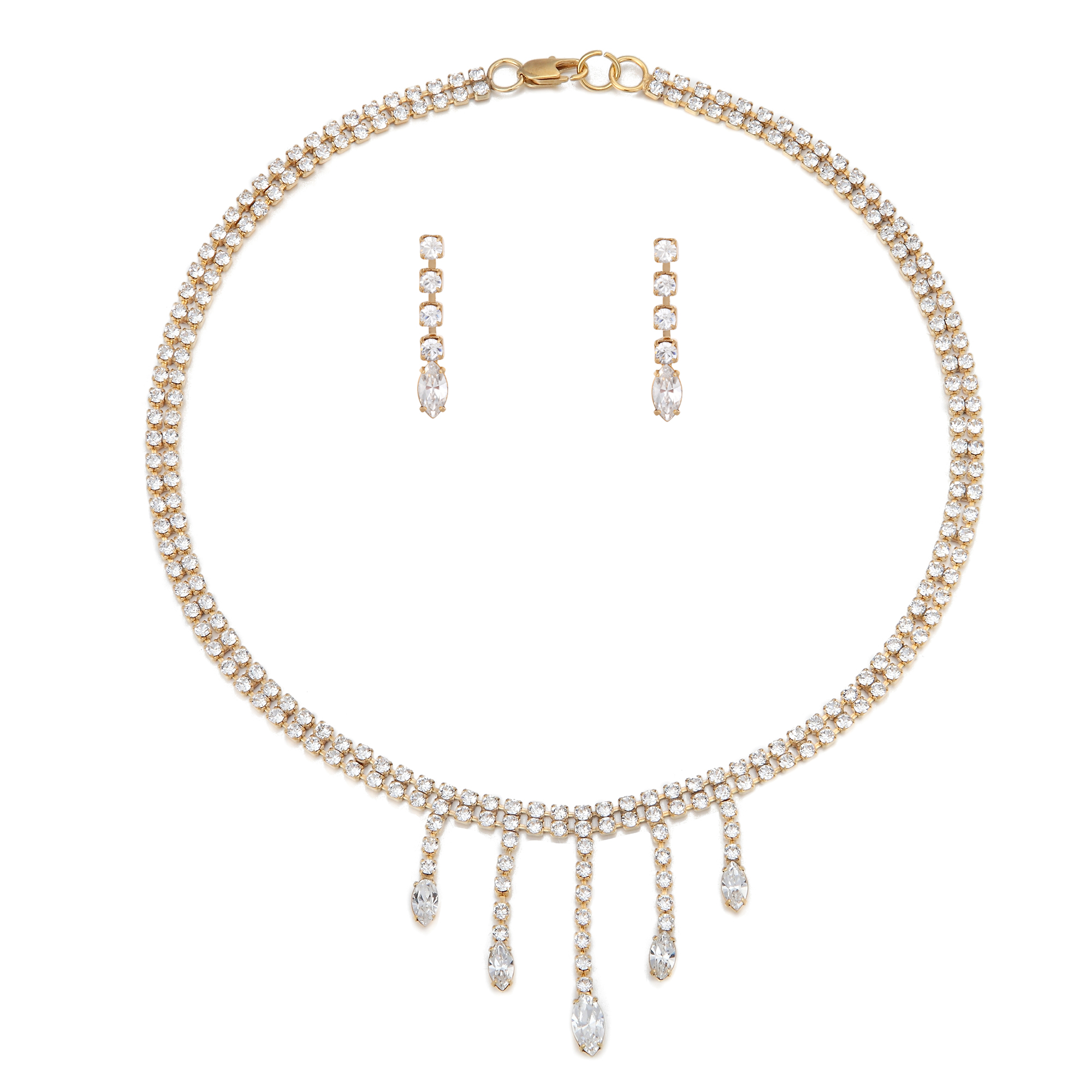 Don’t go chasing waterfalls… unless they’re pure pear-fection like this waterfall-style necklace set with matching earrings. Roll out the red carpet! Sold as a single necklace with a matching pair of earrings, available in Silver or 18ct Gold plating over brass.