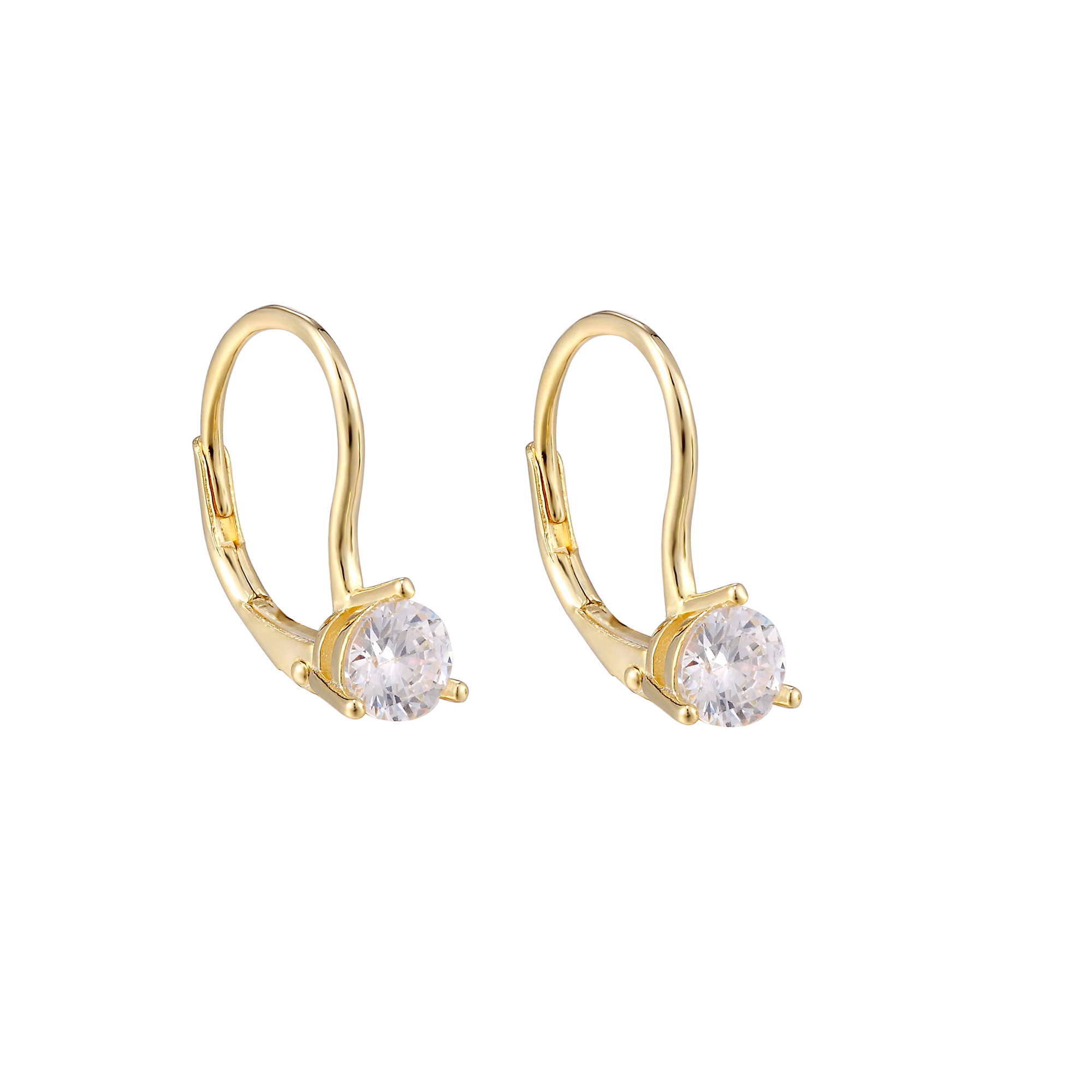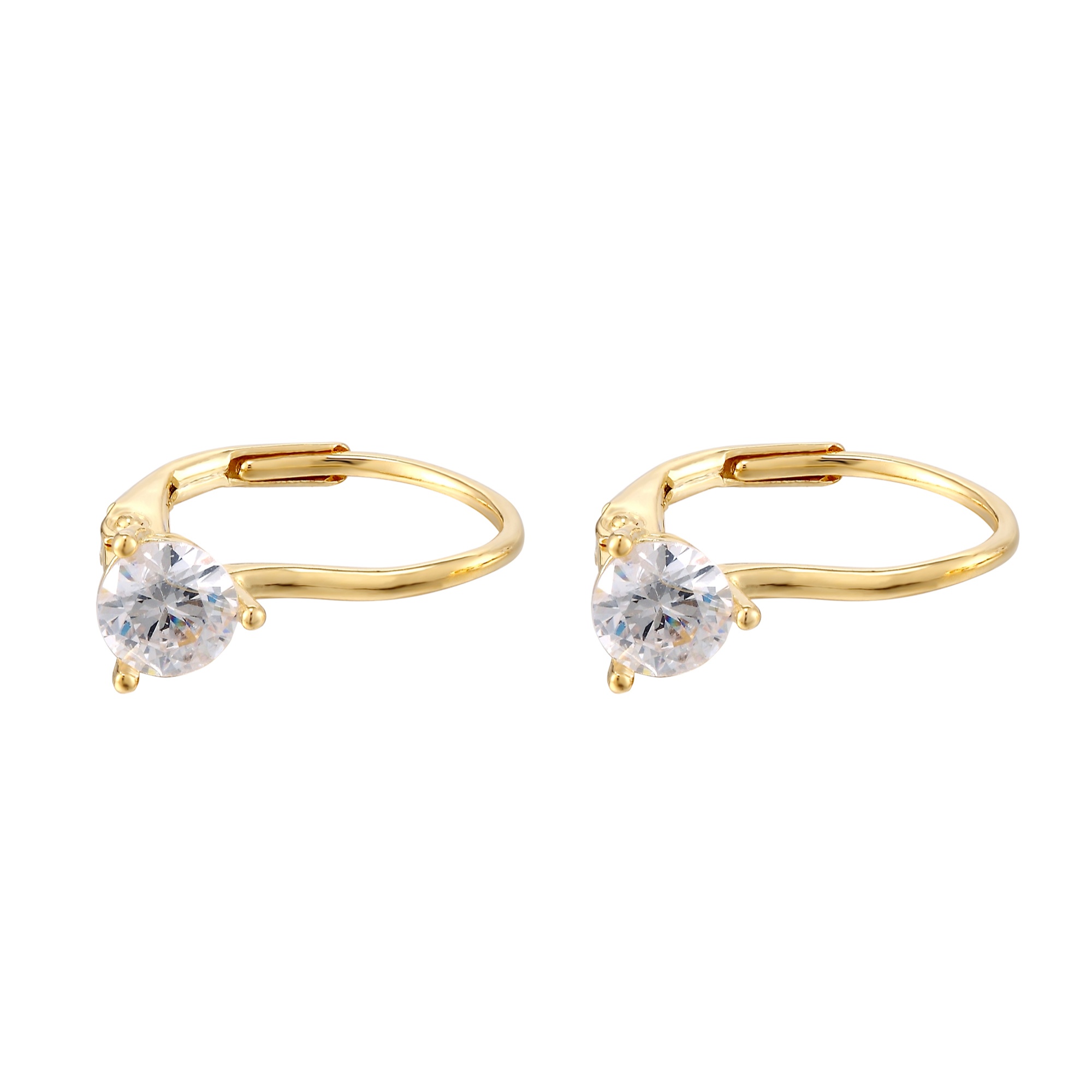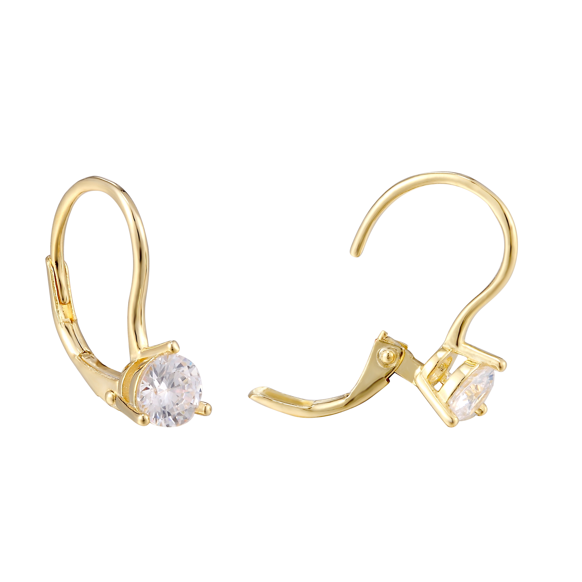 Yellow Gold Plated Solitaire Cut CZ Leverback Earrings