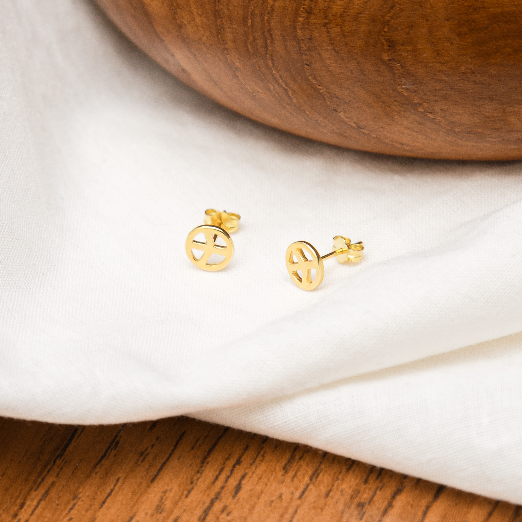 A snowy accessory that is perfect for every occasion, these simple peace sign stud earrings are a must have for your jewellery collection. Made from 9ct gold plated sterling silver, these are a dainty piece of jewellery that will look beautiful worn alone or with other ear jewellery for a more contemporary feel. All our jewellery come in a beautiful linen presentation box, making them the perfect gift for that someone special.