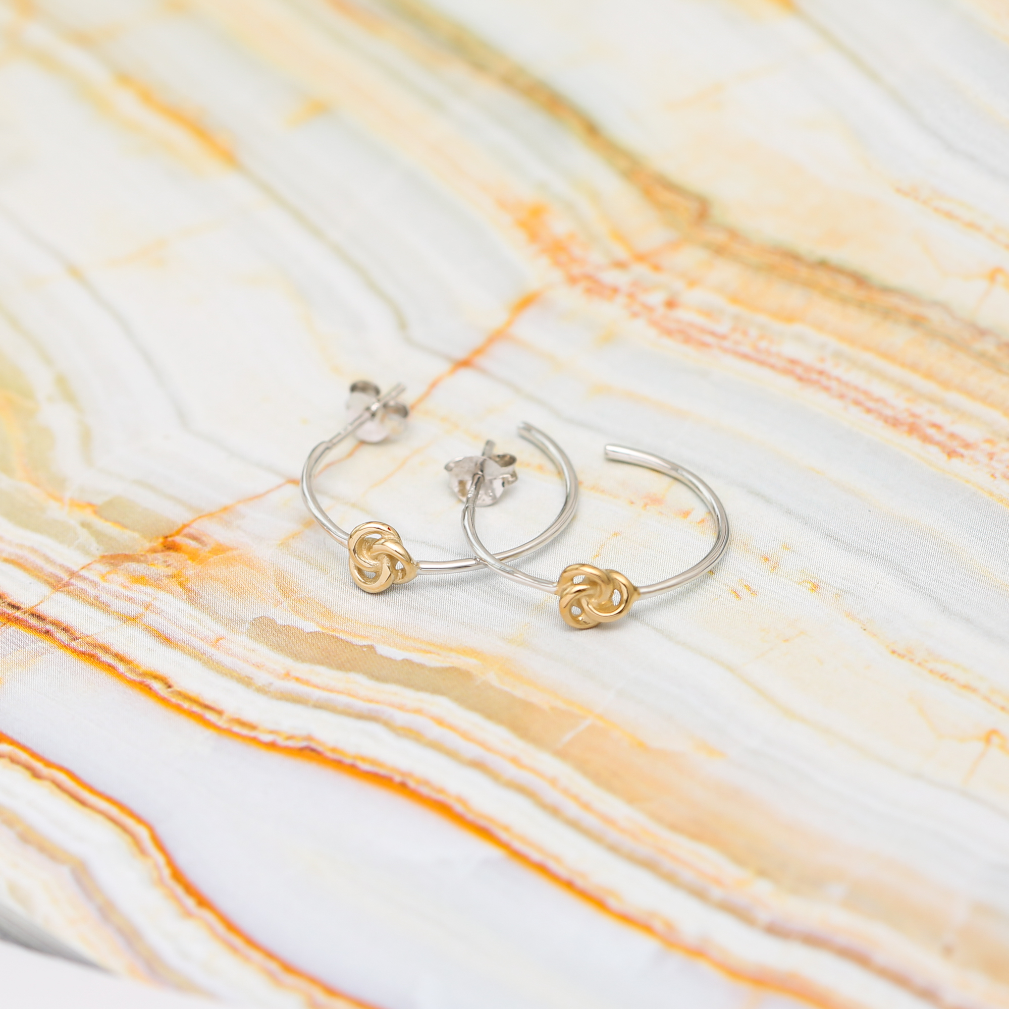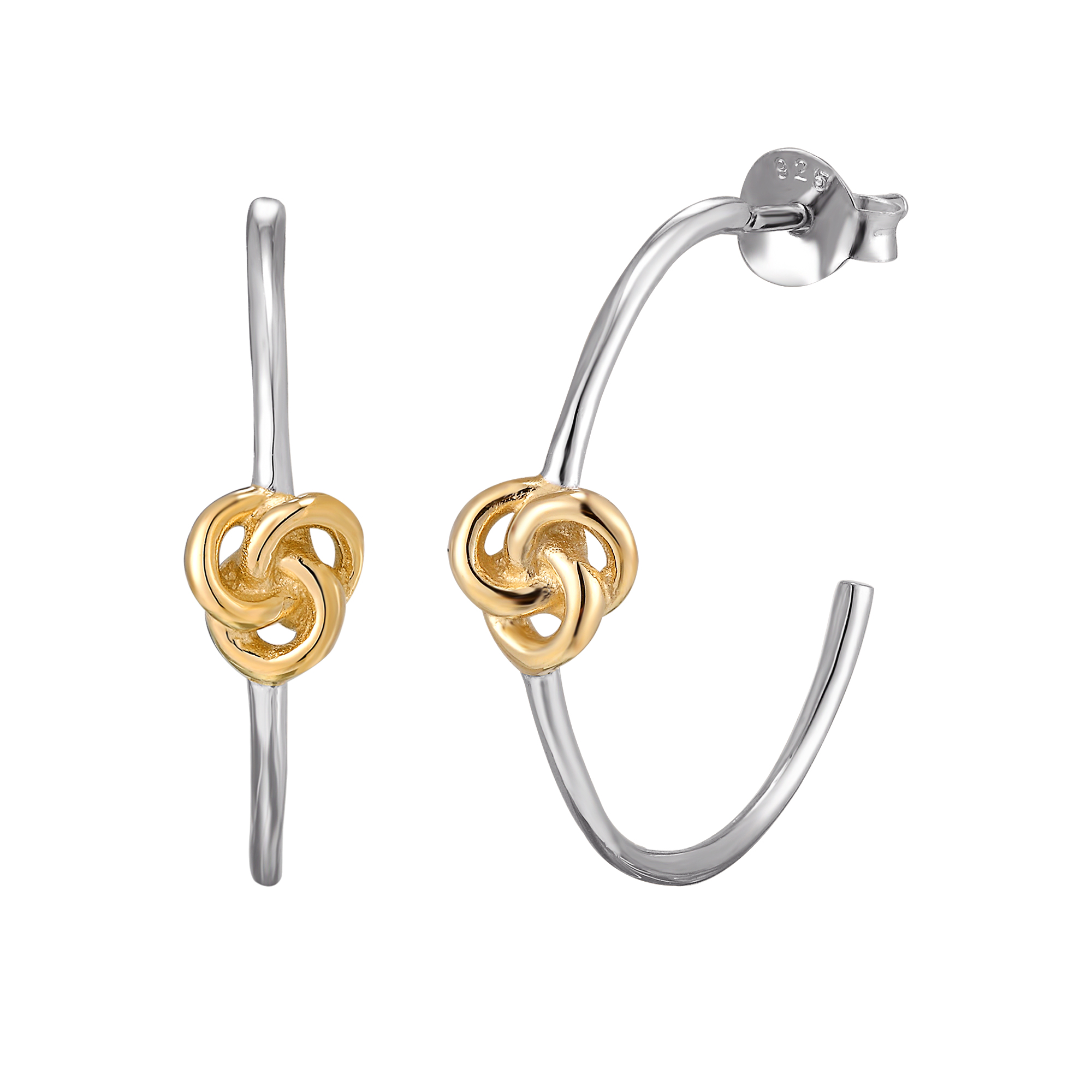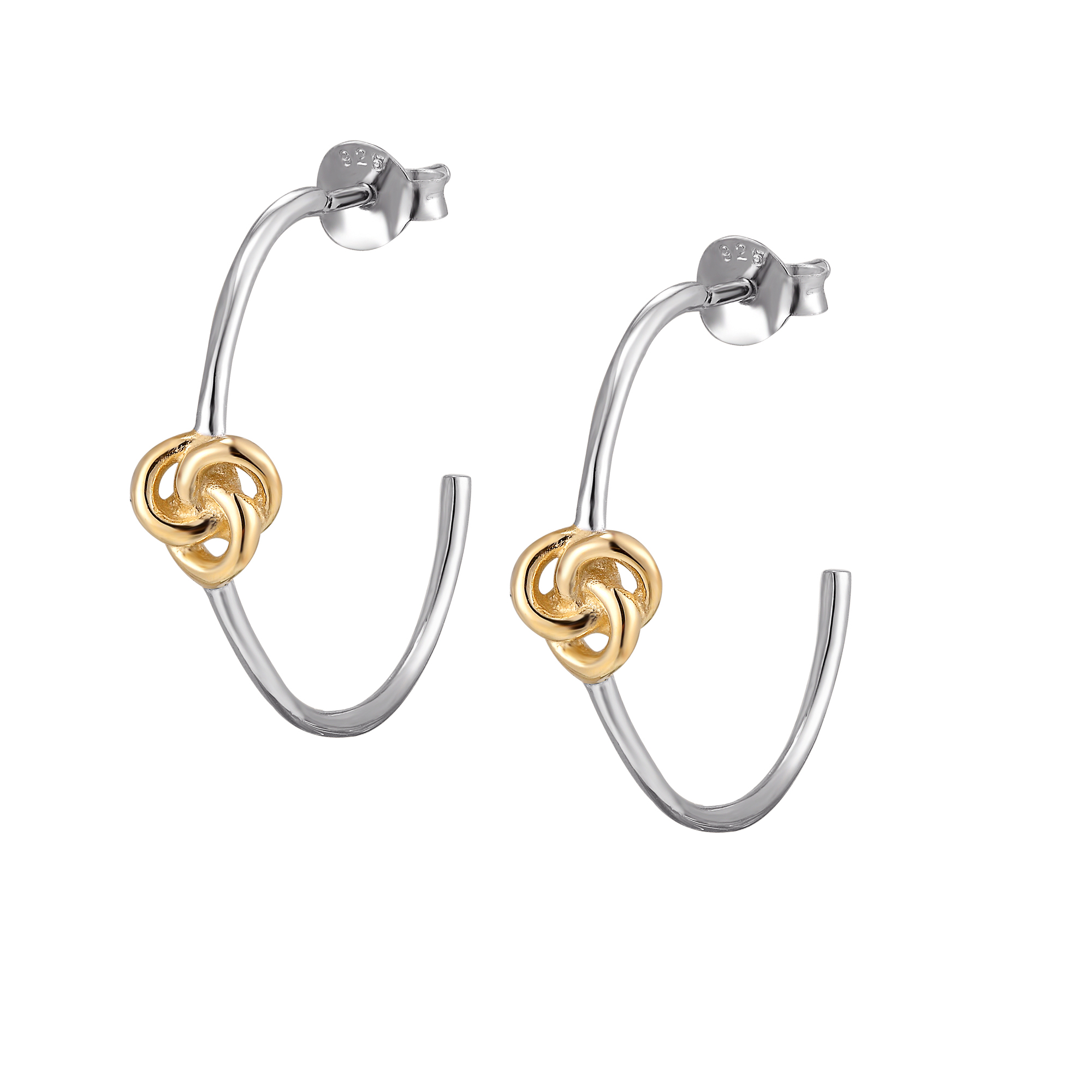 These half hoop earrings are made from sterling silver with small gold plate knot detail in the centre and a butterfly scroll fitting. These earrings give that touch of elegance for any occasion. All our jewellery come in a beautiful linen presentation box, making them the perfect gift for that someone special.