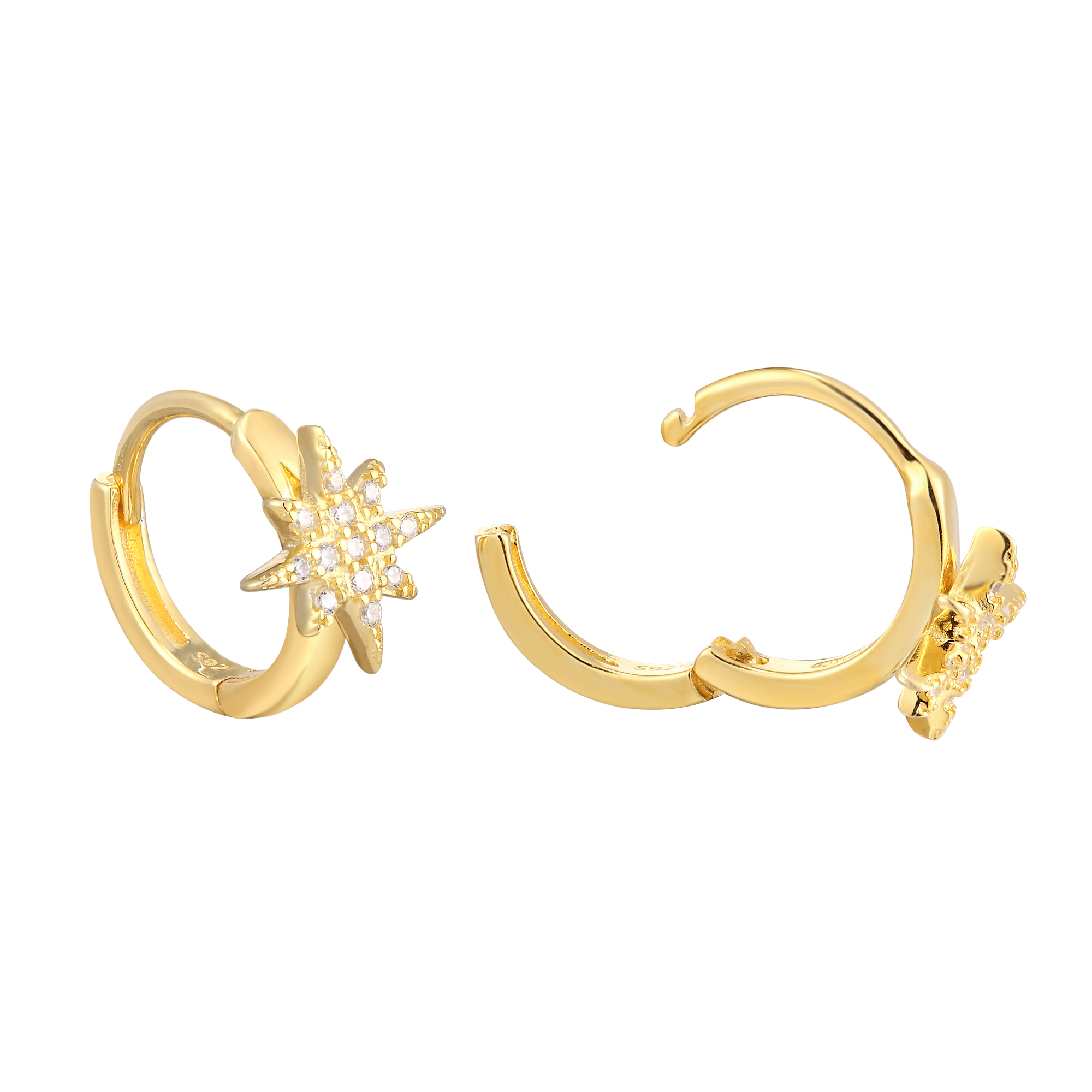 Yellow Gold Plated White CZ Star Burst Huggie Earrings
