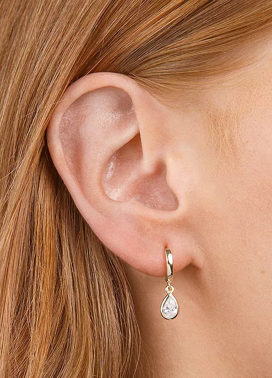 These elegant teardrop earrings are the perfect accessory to add a touch of sparkle to any look. A gorgeous addition to dress up for any occasion, these make a wonderful gift for a loved one. Made from 18ct gold vermeil on sterling silver.