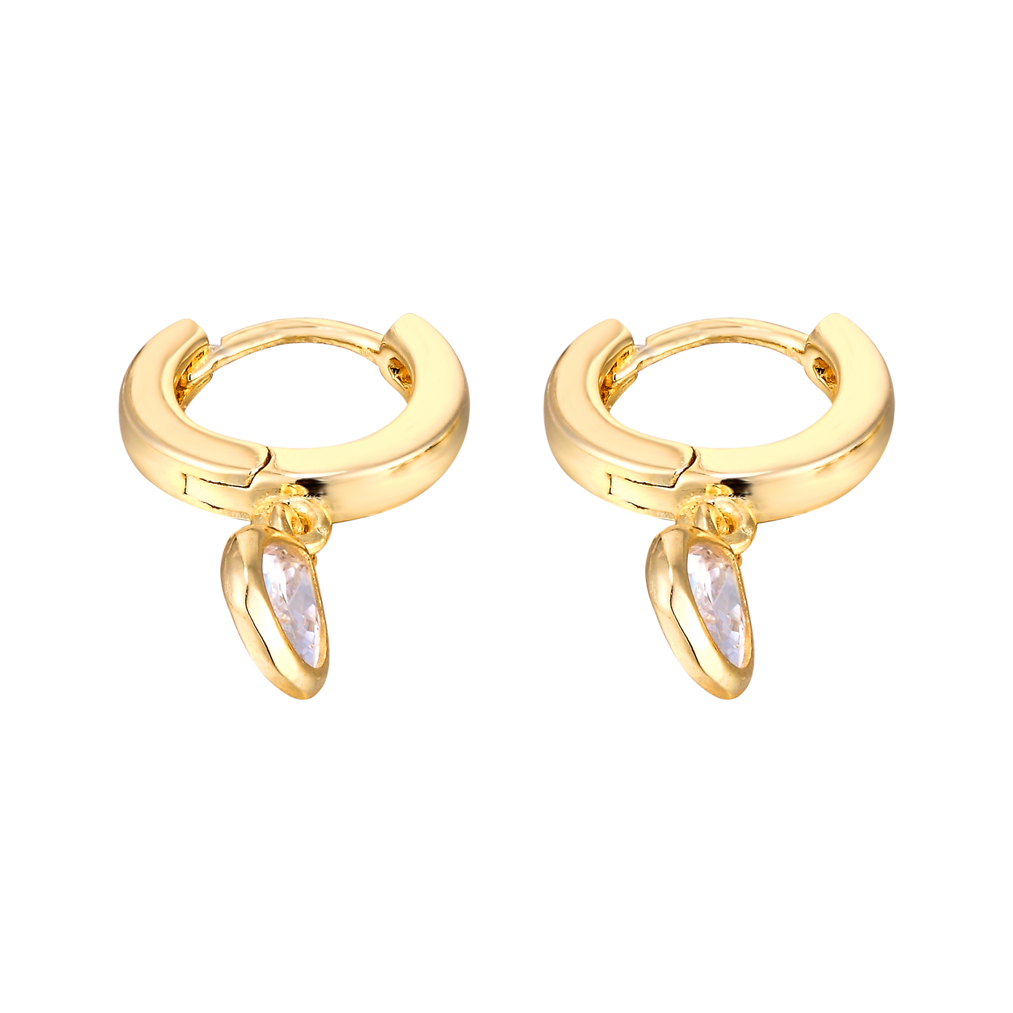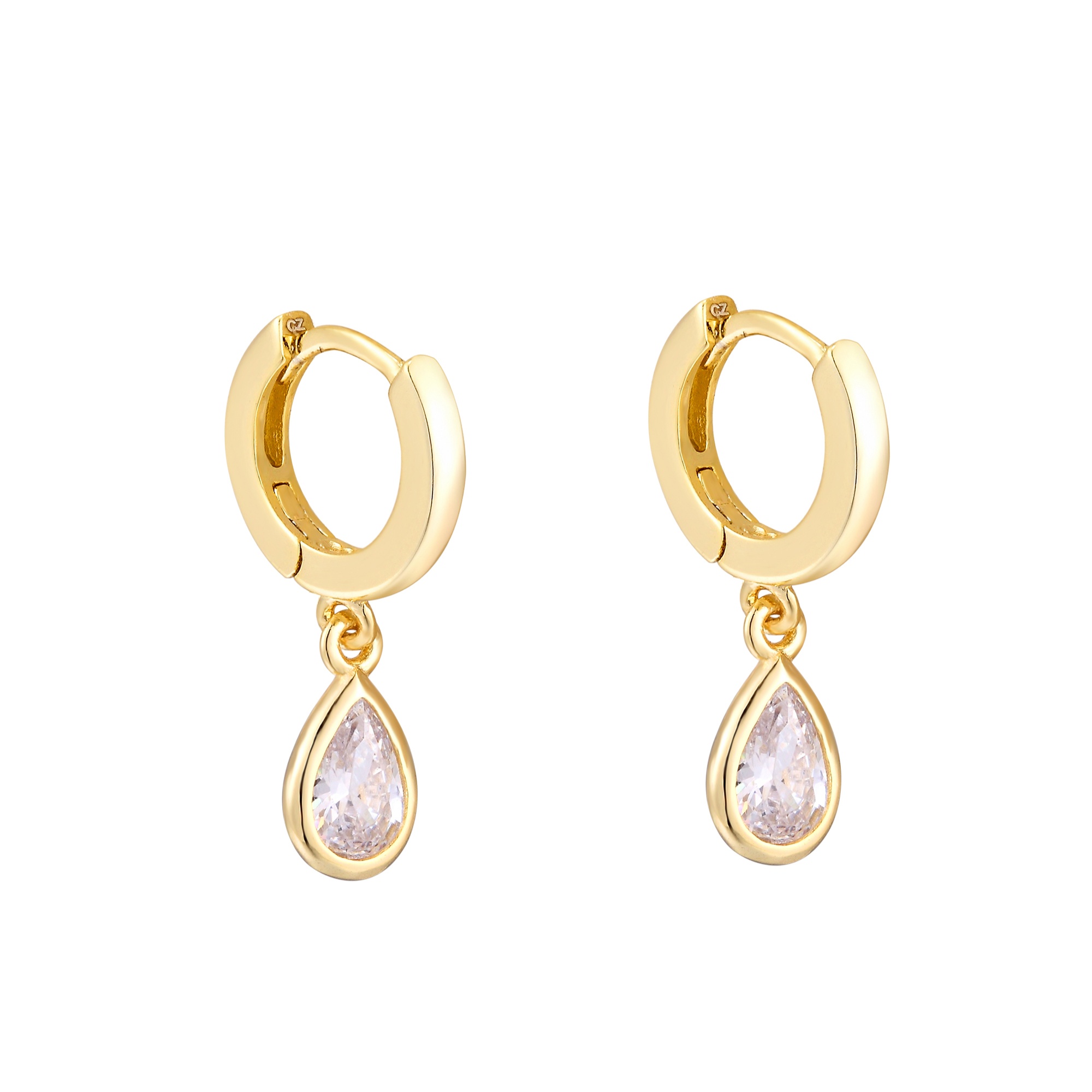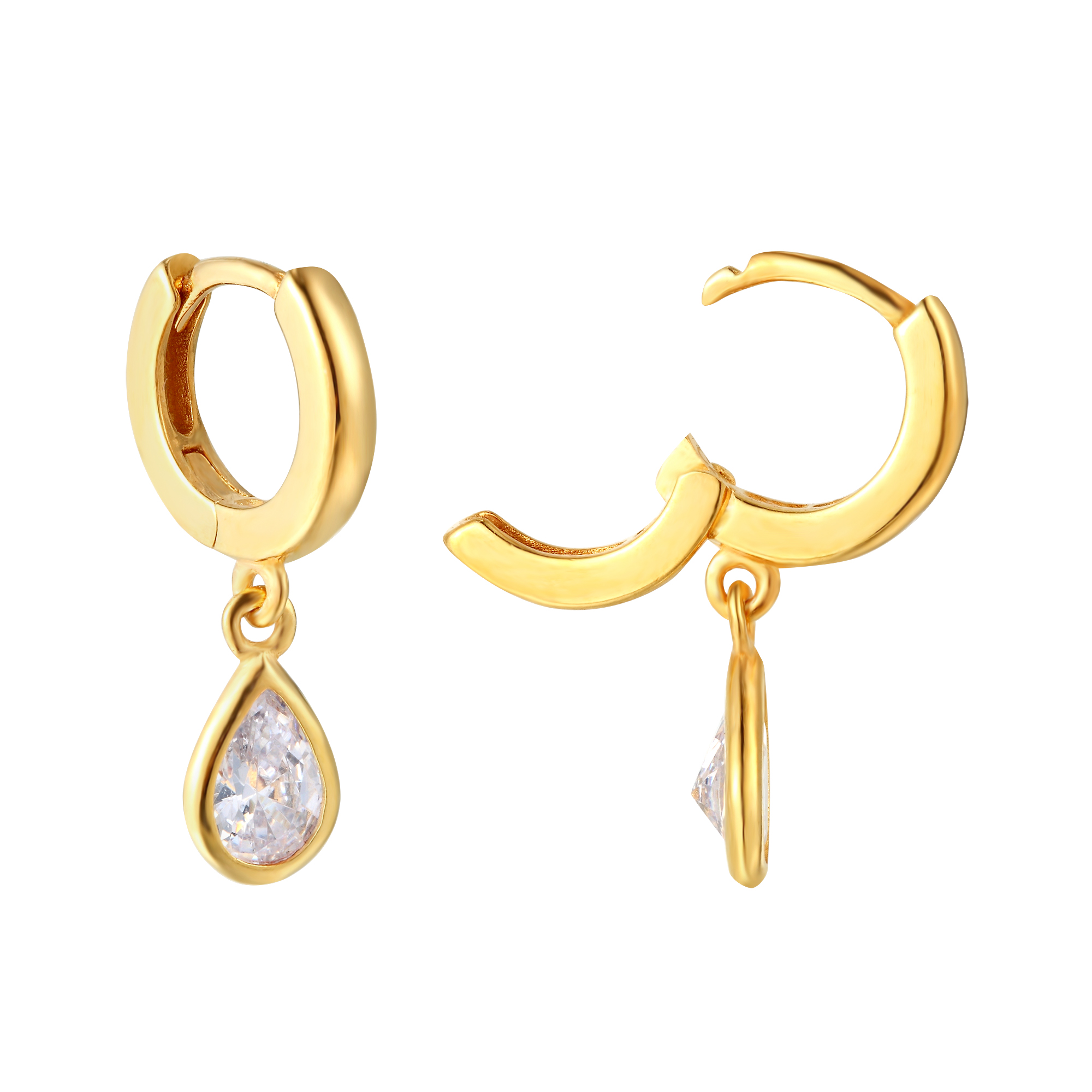 Yellow Gold Plated White Teardrop CZ Charm Huggie Earrings